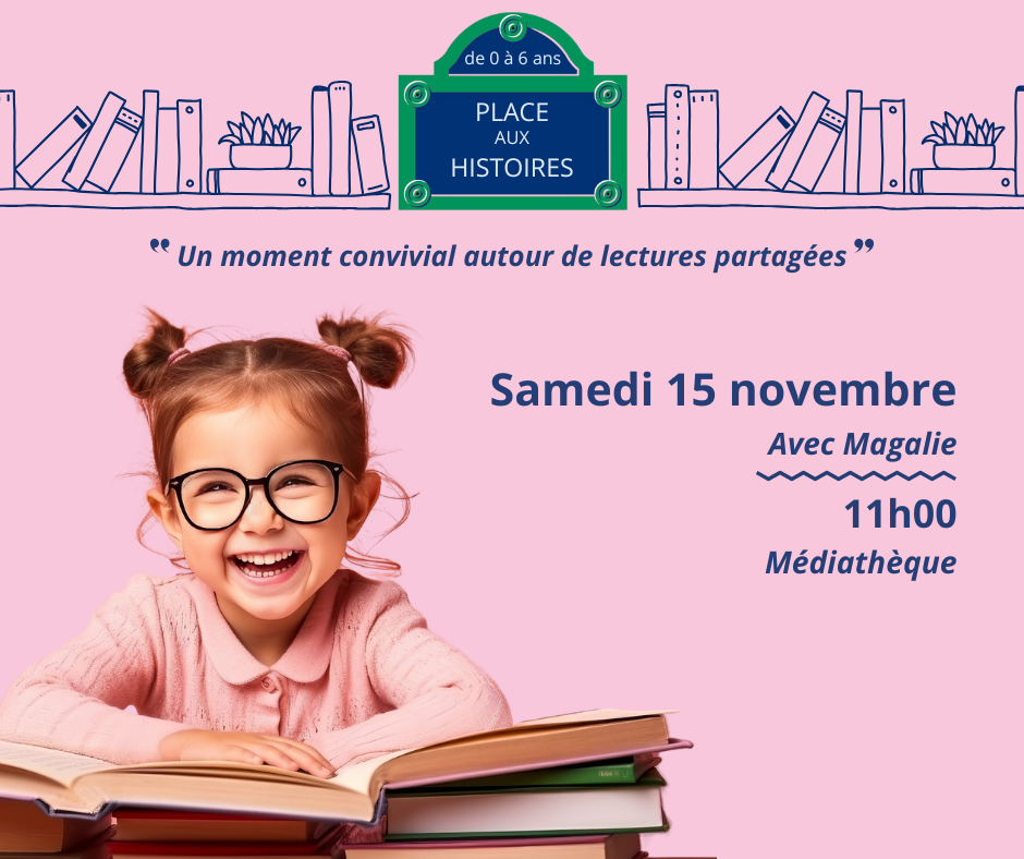 Prochain Place aux Histoires le samedi 15 novembre à 11h00 à la Médiathèque.