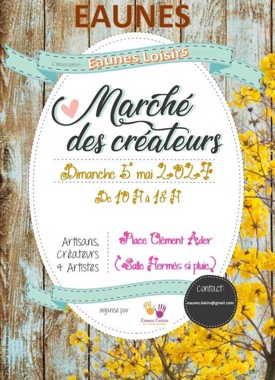 L’association Eaunes Loisirs organise un marché des créateurs dimanche 5 mai Place Clément Ader.