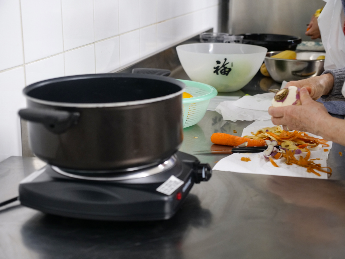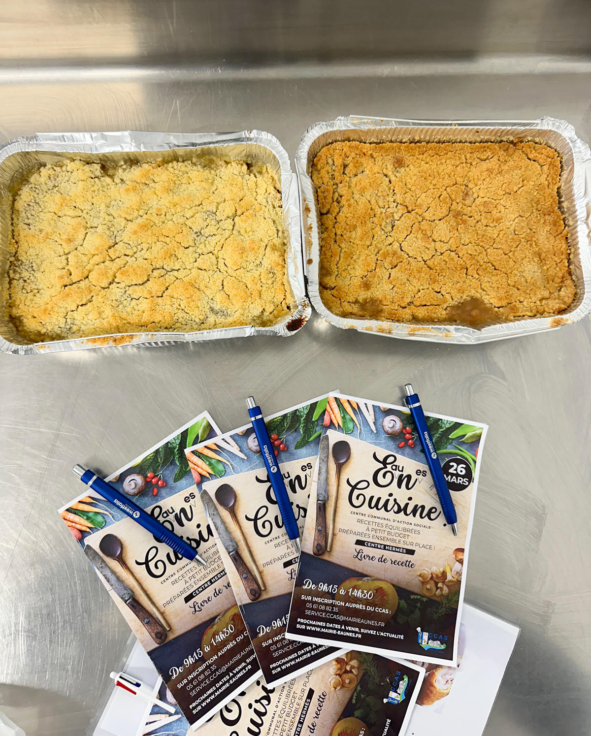 Après avoir préparé ensemble un menu complet pour moins de 5€ par personne – wrap crudités avec salade, carottes, betteraves en entrée, cordon bleu et jardinière de légumes en plat, puis crumble aux pommes en dessert – les participants ont partagé un moment chaleureux en dégustant leur repas.